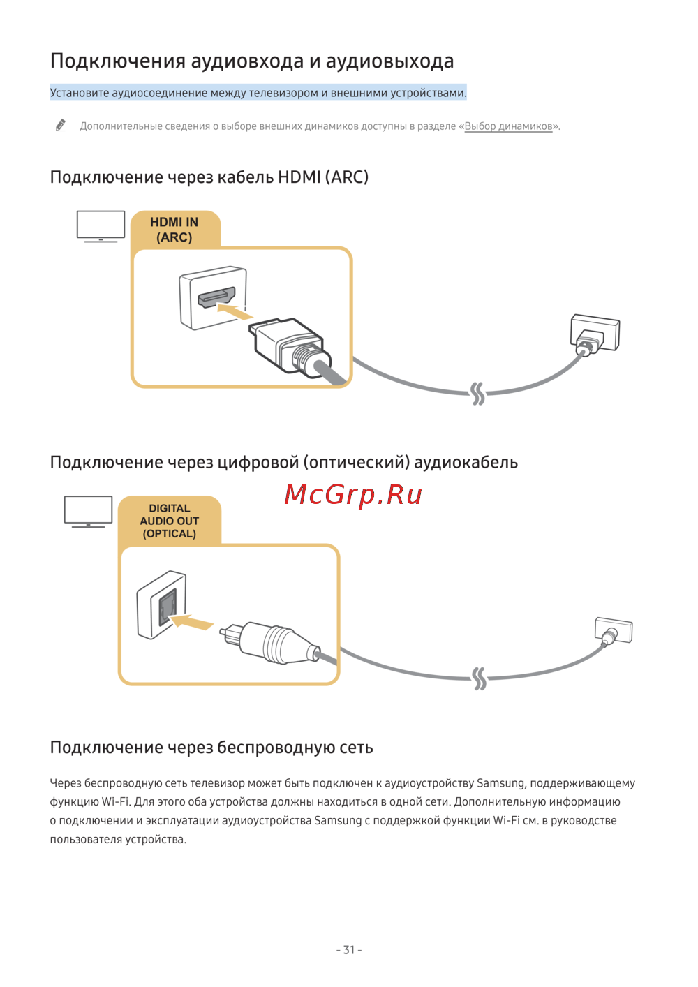 Samsung UE65NU7470U — как подключить аудиоустройства к телевизору: полное руководство [31/188]
