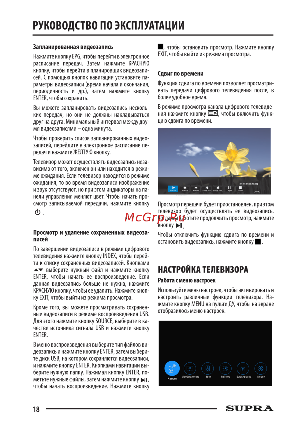 Supra STV-LC32LT0013W — руководство по эксплуатации: видеозапись и настройки телевизора [18/36]