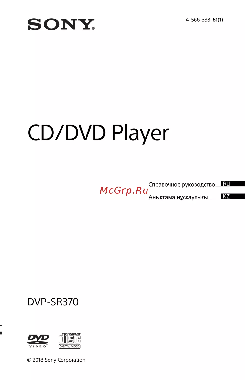 Sony DVP-SR370 Инструкция по эксплуатации онлайн