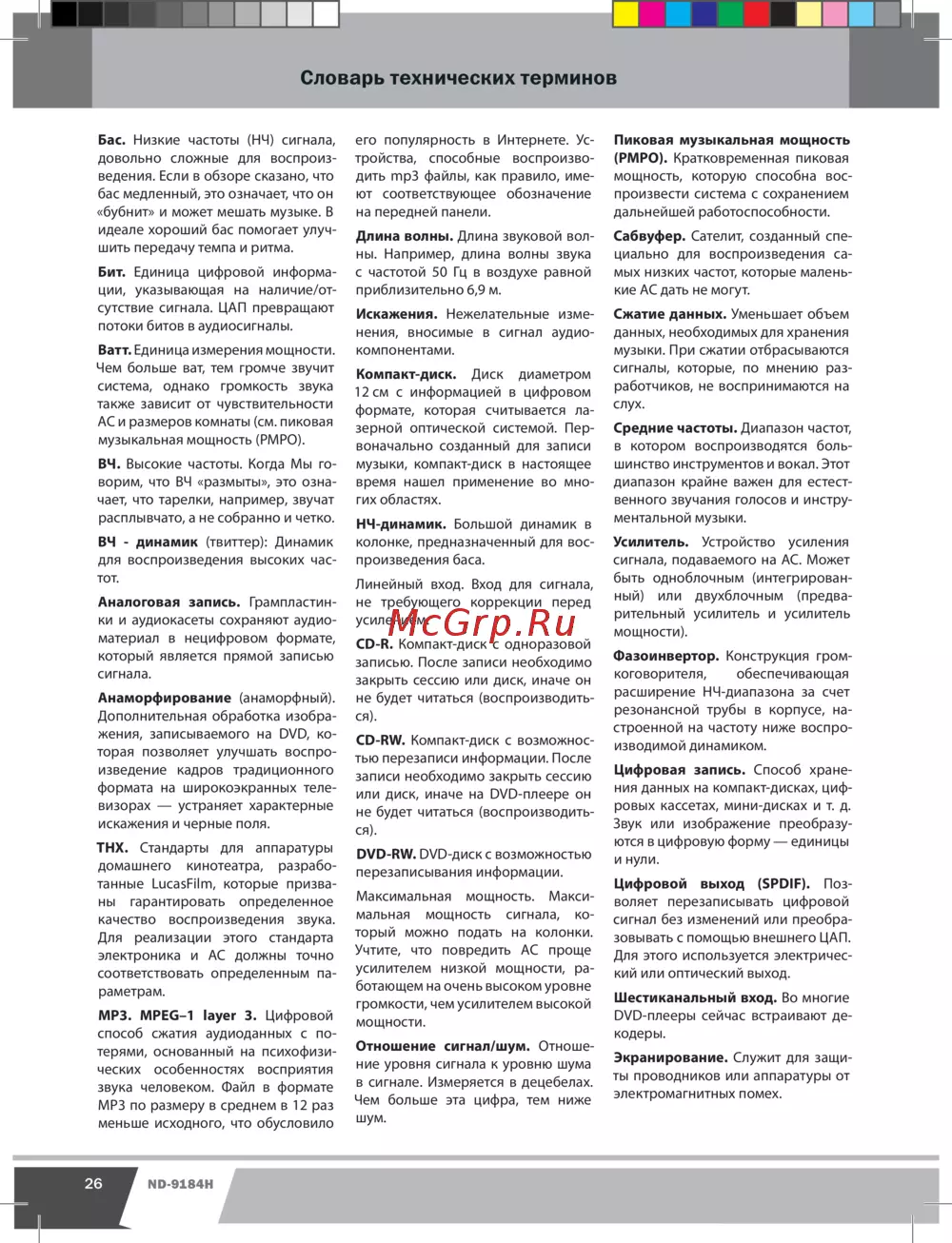 Novex ND9184 H — основные термины аудиотехники: частоты, динамики и форматы [27/29]
