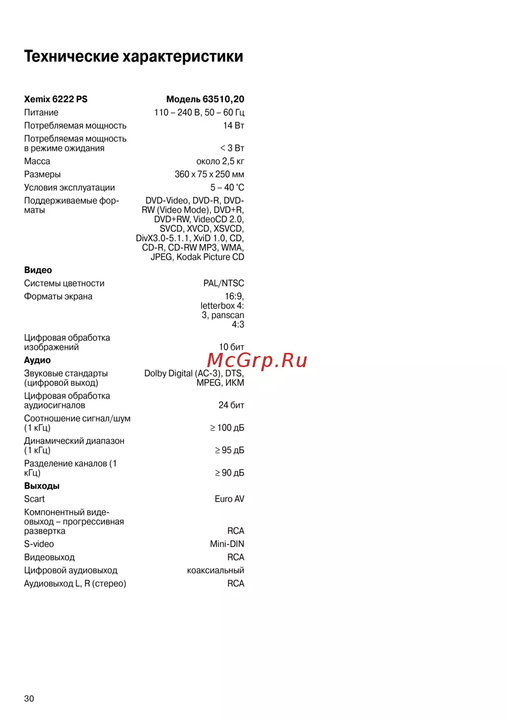 - Технические характеристики p.30