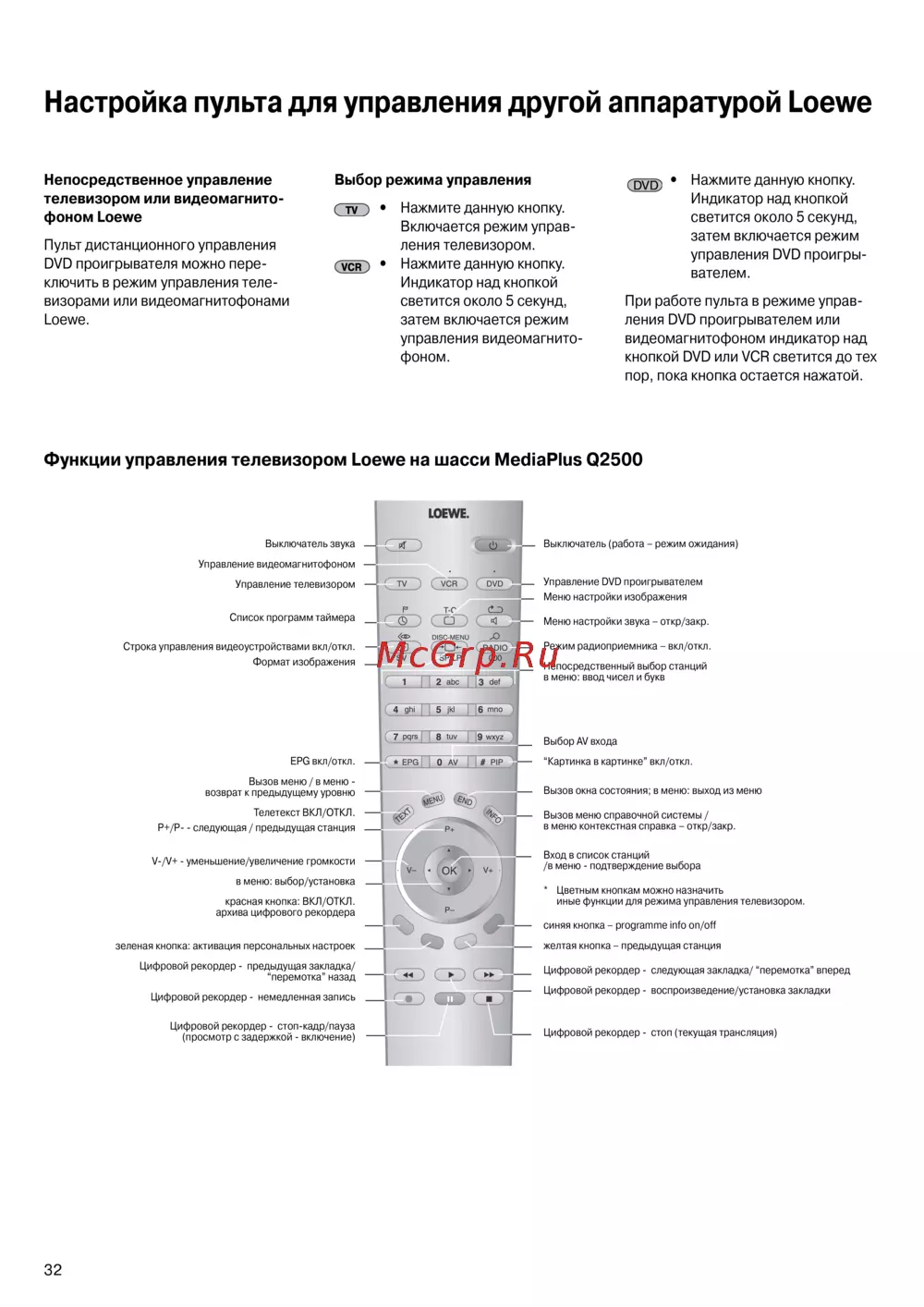 - Функции управления телевизором loewe на шасси mediaplus q2500 p.32