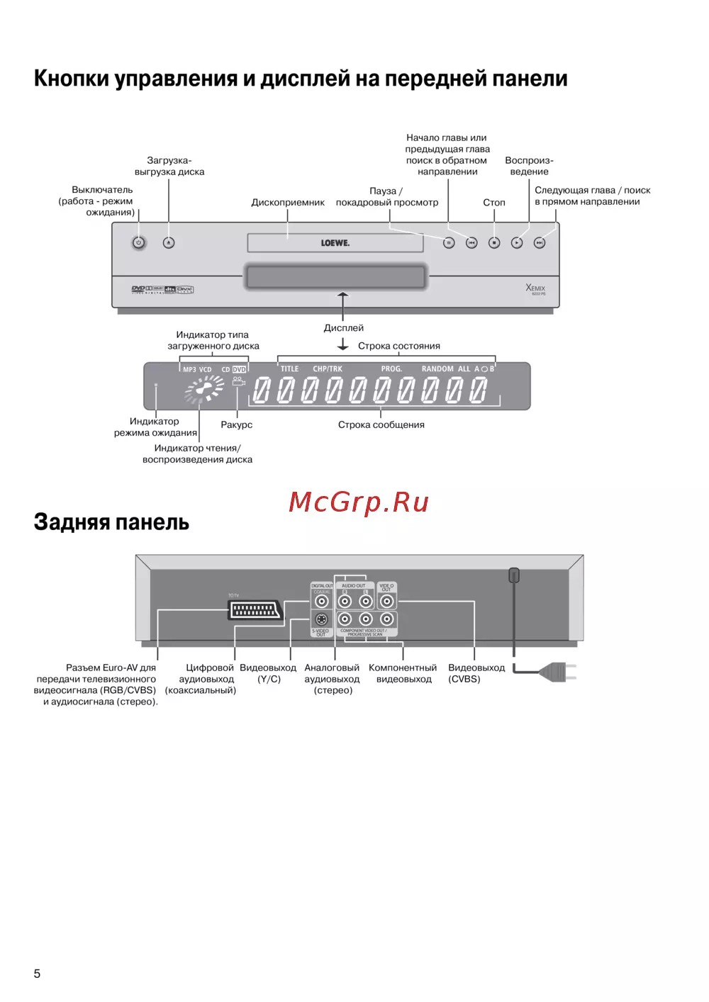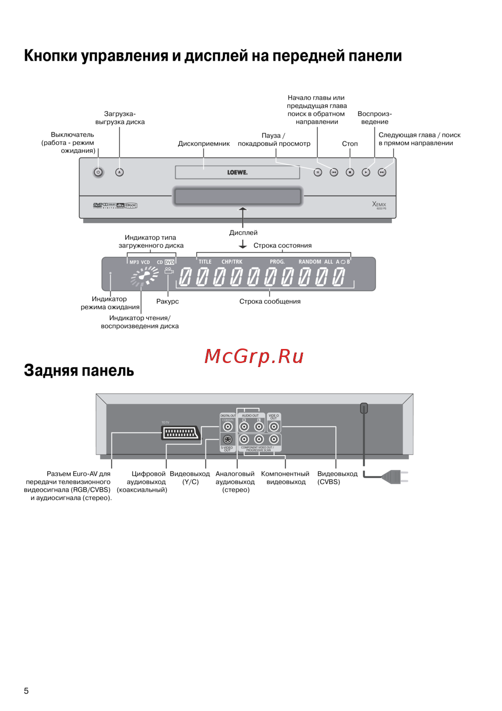 - Кнопки управления и дисплей на передней панели p.5