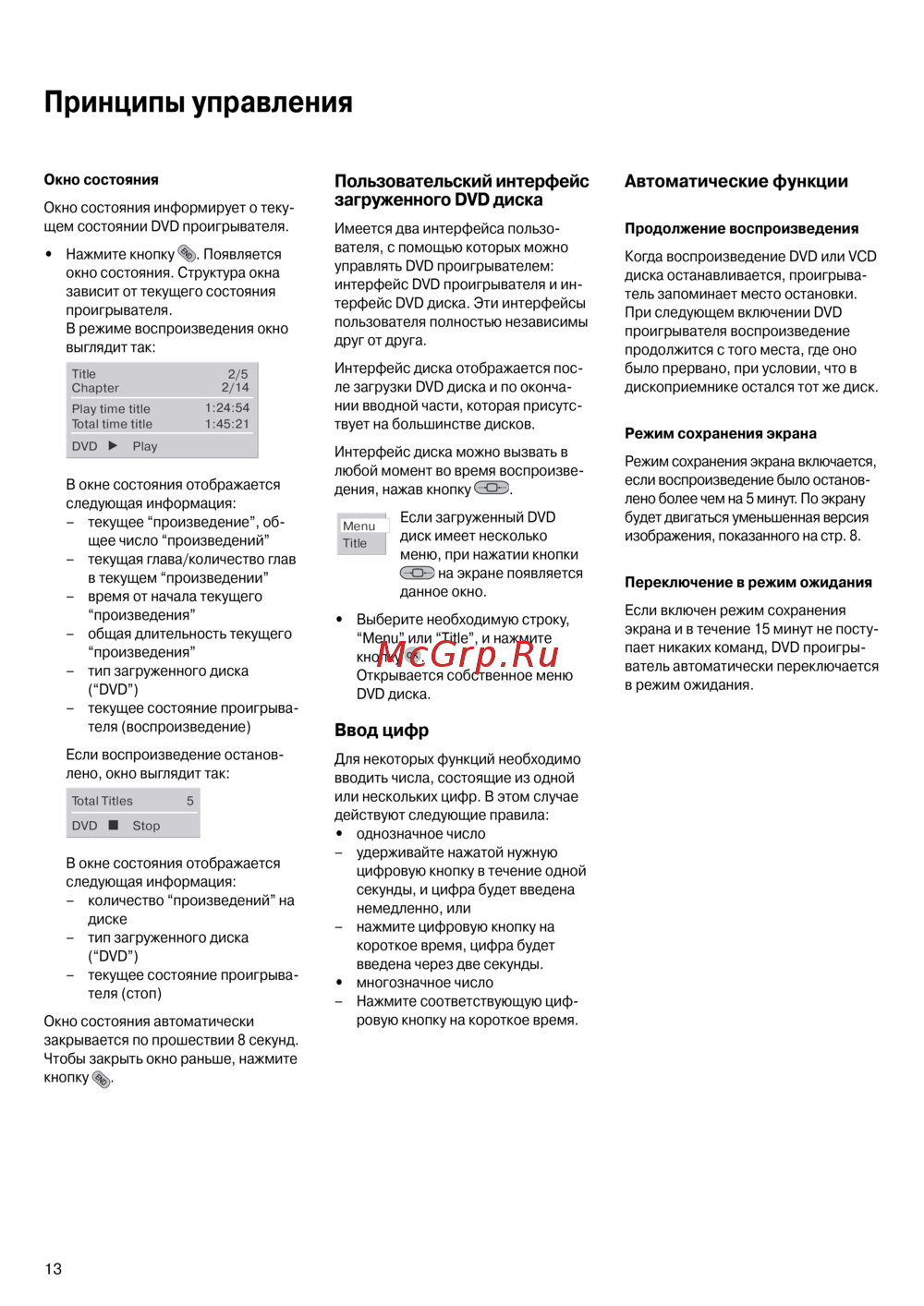 - Пользовательский интерфейс загруженного dvd диска p.13