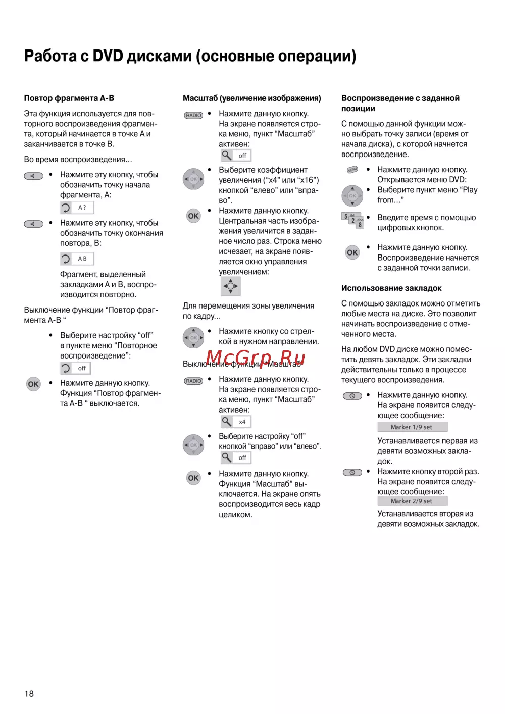 Узнайте, как использовать функции повторного воспроизведения, масштабирования и закладок на DVD дисках. Простые шаги для удобного просмотра ваших любимых фрагментов.