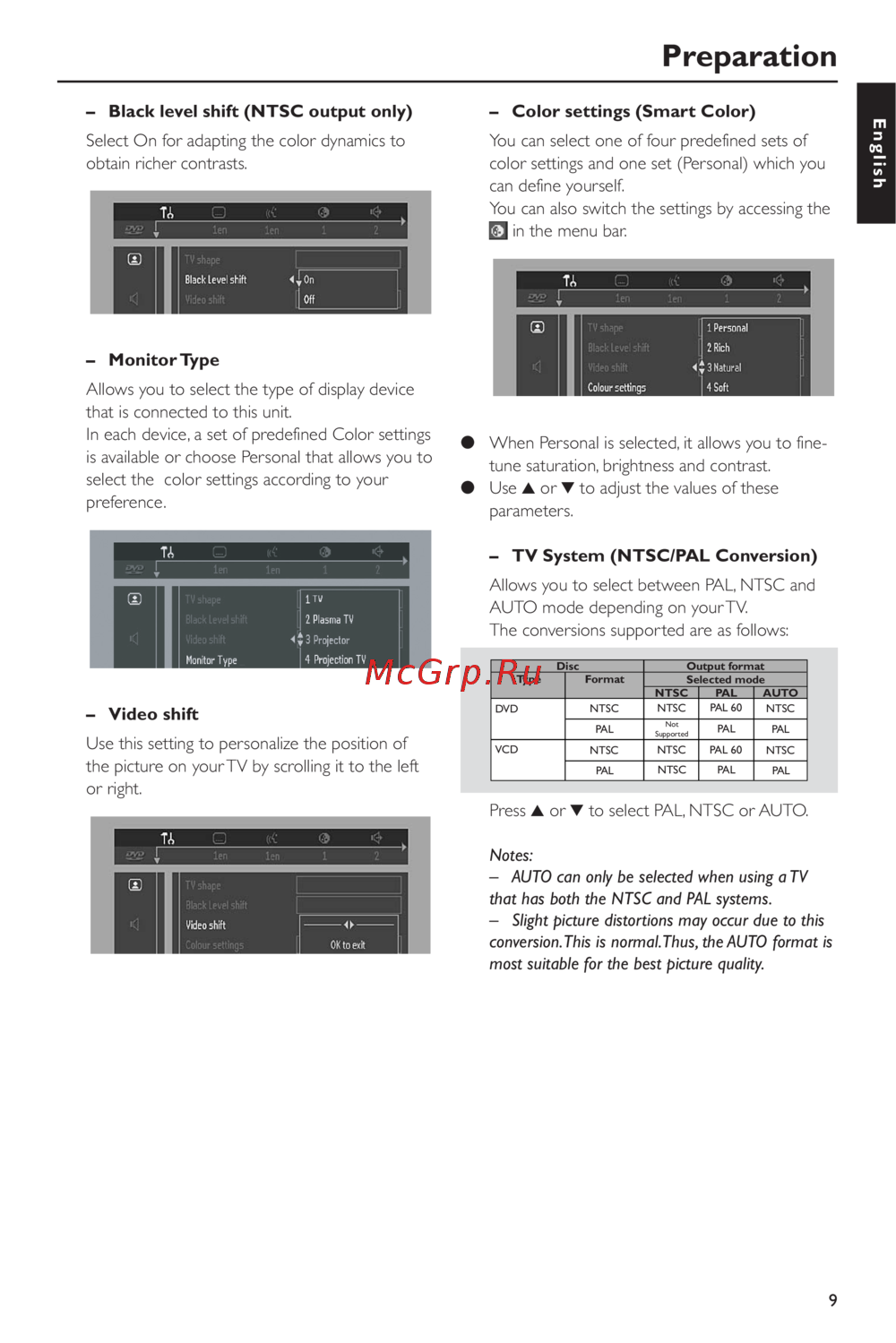 Press 3 or 4 to select PAL, NTSC or AUTO.
