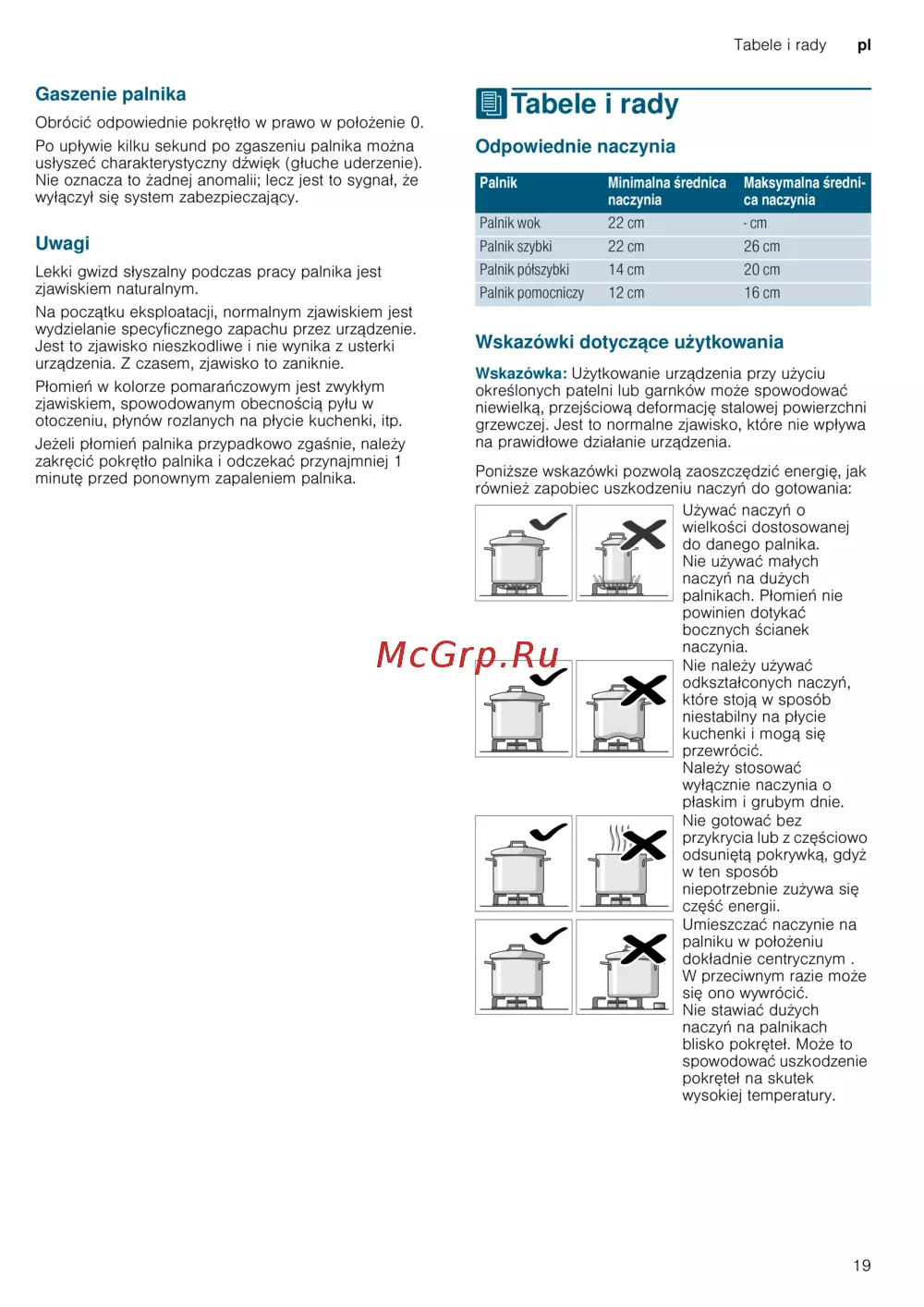 Siemens iQ500 EC6A5HB90R — wskazówki dotyczące użytkowania palników i naczyń kuchennych [19/48]