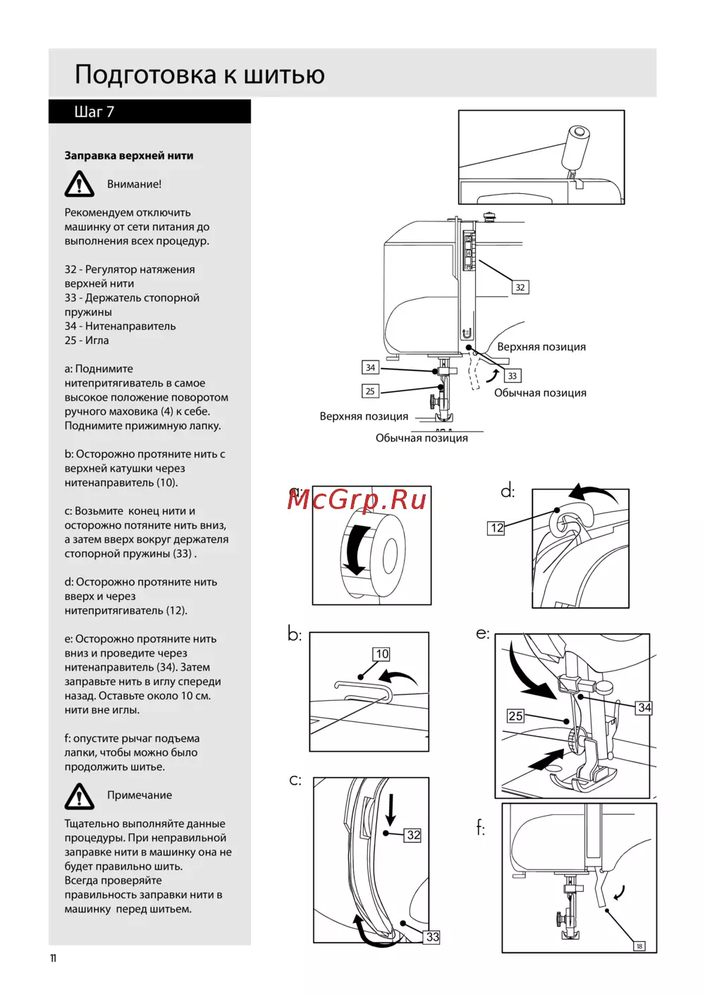 Comfort 835 — подробное руководство по заправке верхней нити швейной машинки [12/31]