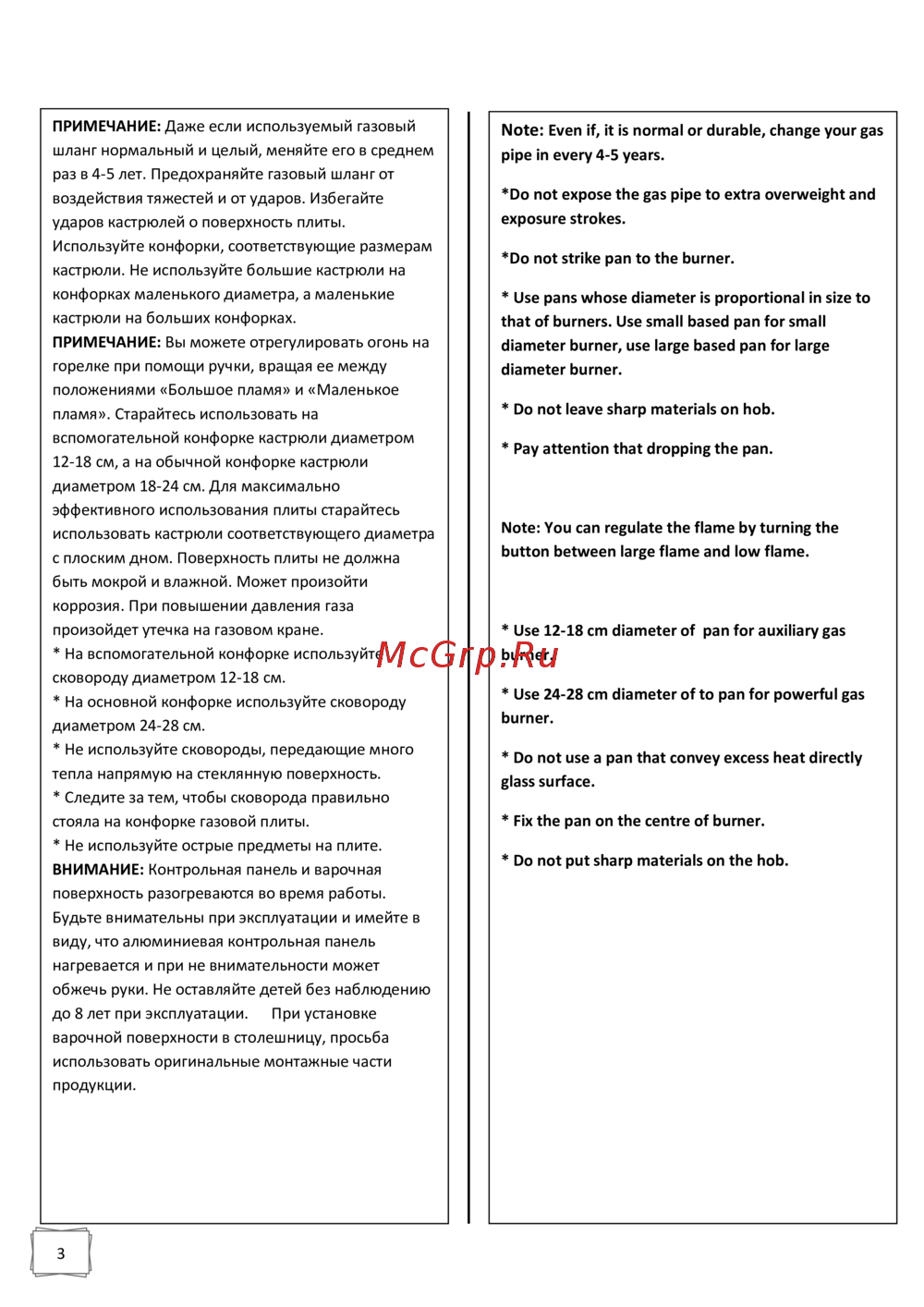 Maunfeld MGHE.32.73W — правила безопасного использования газовой плиты и кастрюль [4/12]
