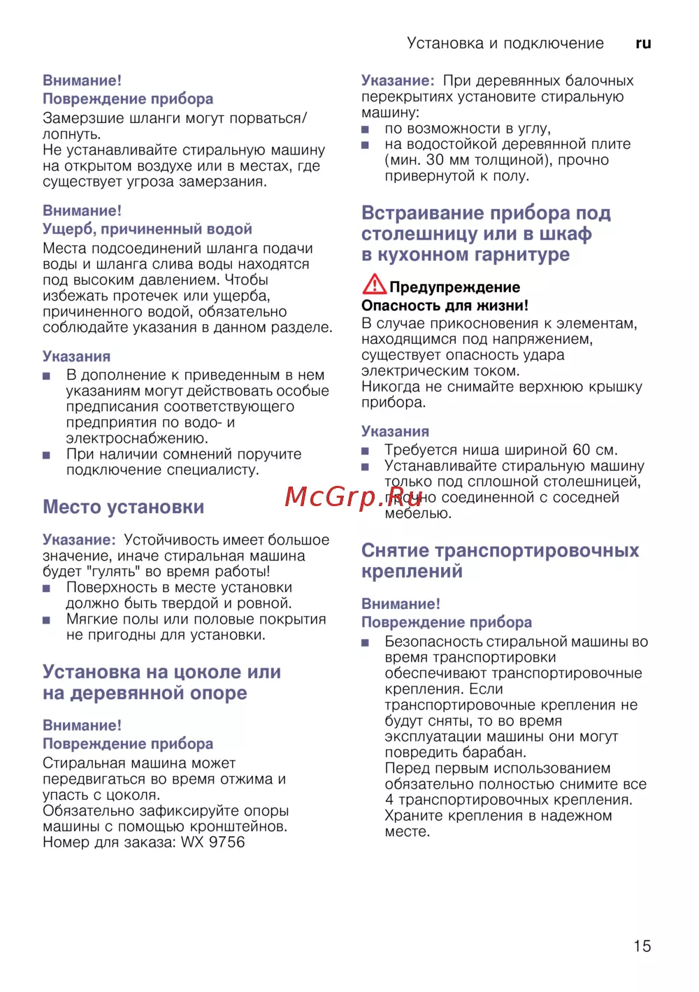 Siemens WS12L241OE [15/48] Установка на цоколе или на деревянной опоре