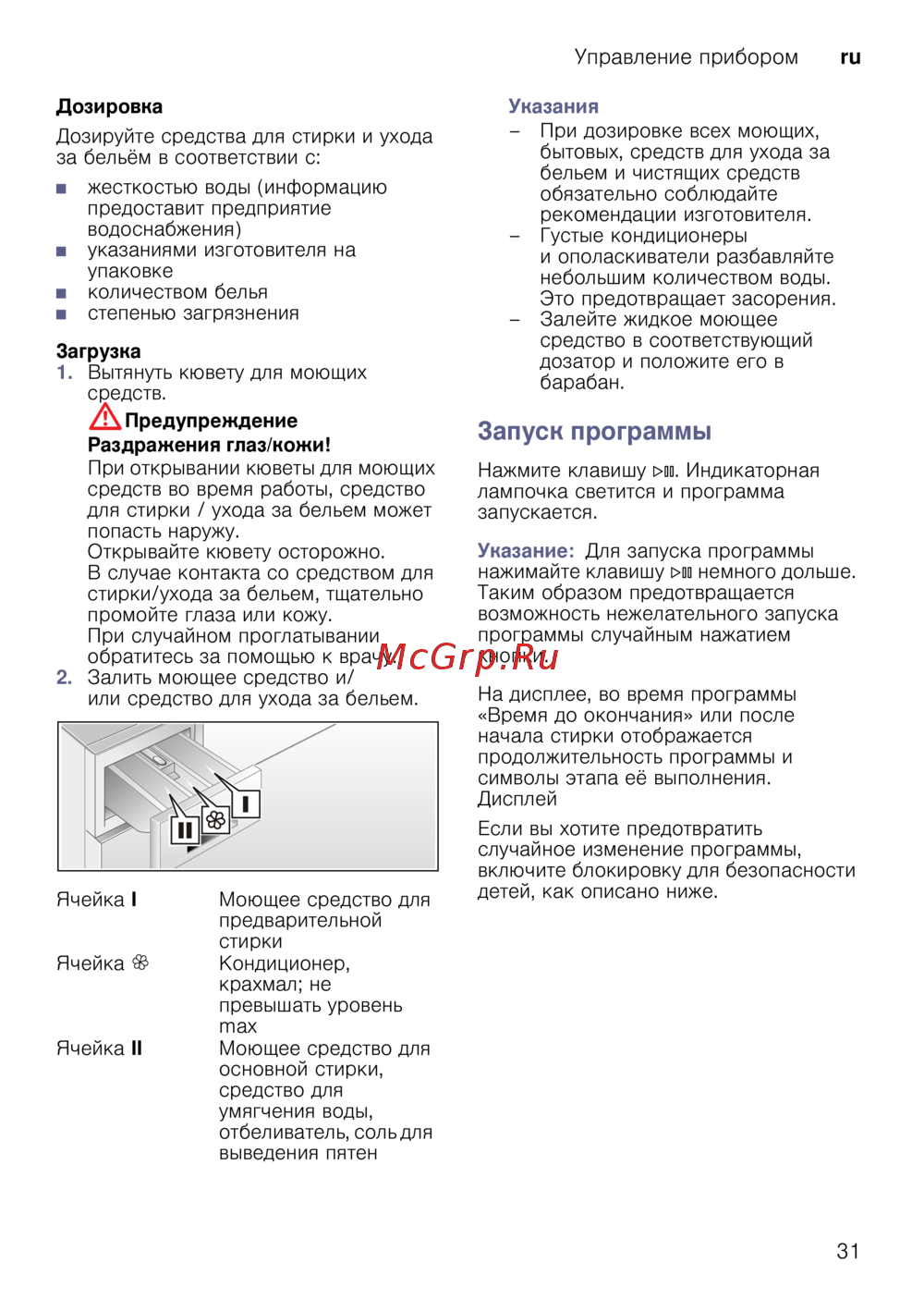 - Дозировка и загрузка средств для стирки и ухода за бельем p.30
