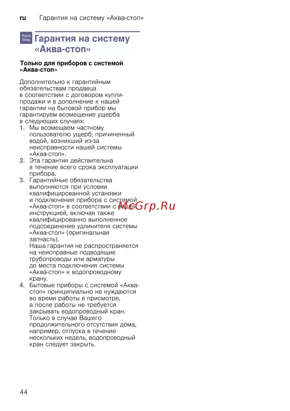 Siemens WS12L241OE [44/48] Гарантия на систему аква стоп