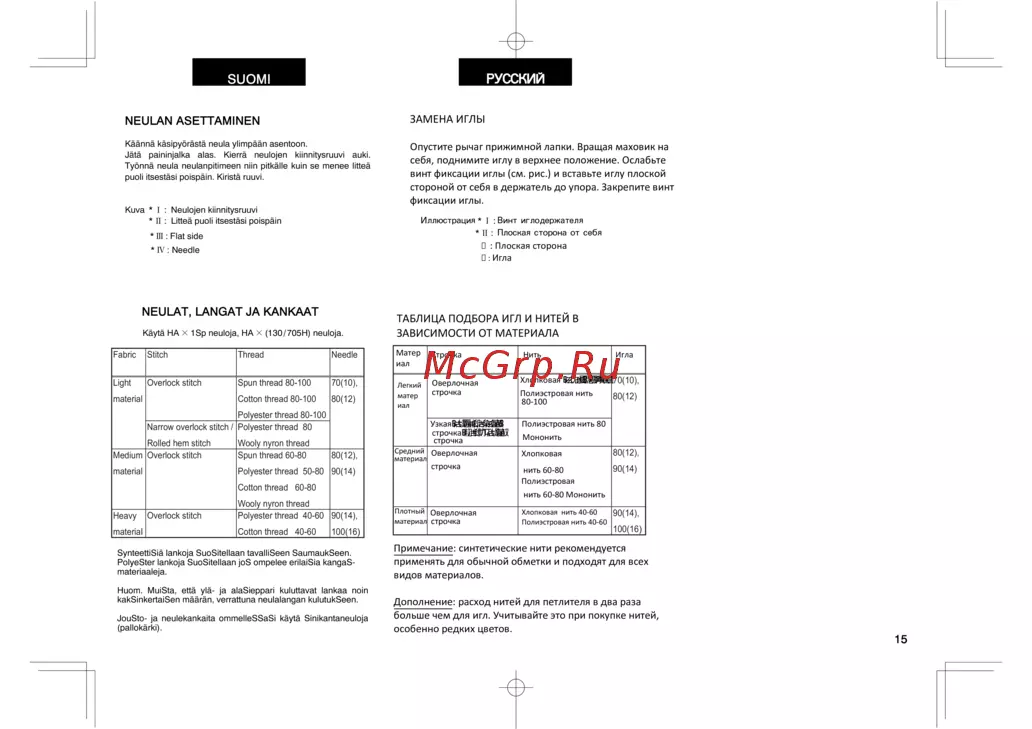 ТАБЛИЦА ПОДБОРА ИГЛ И НИТЕЙ В