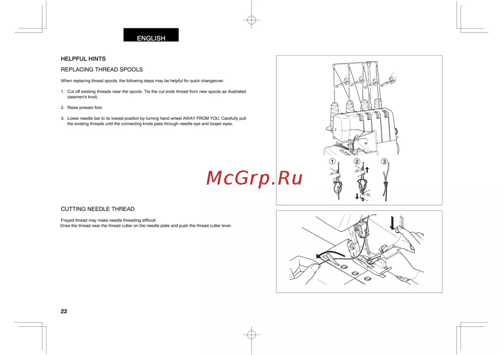 - Рычаг нитеобрезателя нити обрежутся p.15