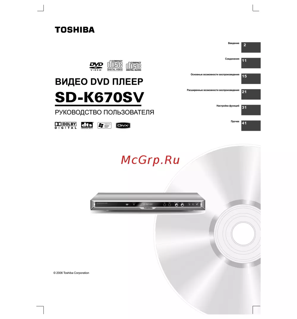 Toshiba SD-K670 SR Инструкция по эксплуатации онлайн