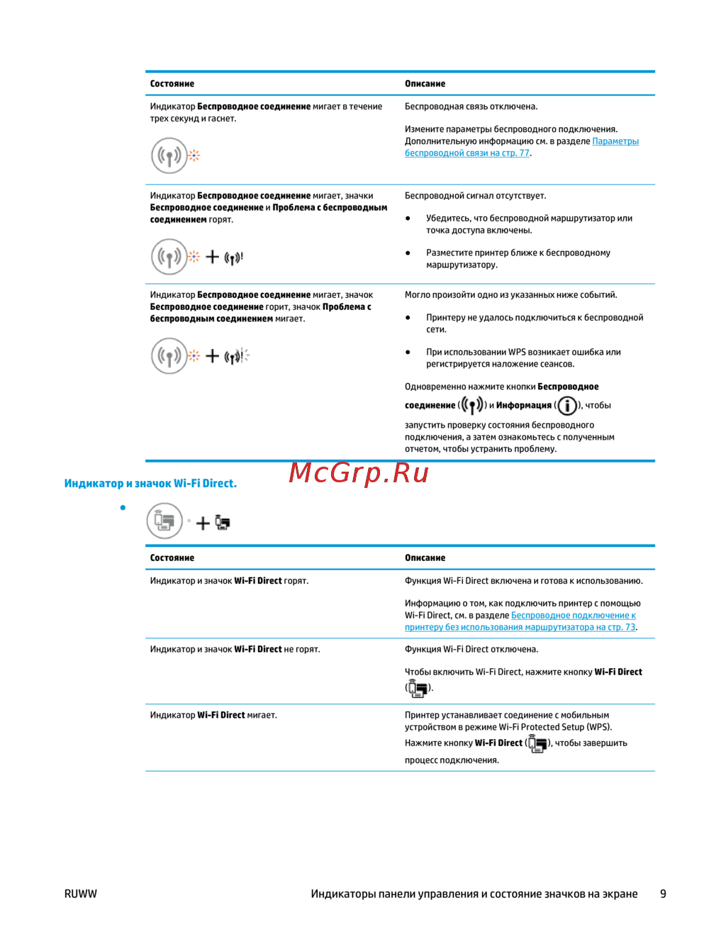 - Ruww индикаторы панели управления и состояние значков на экране 9 p.15