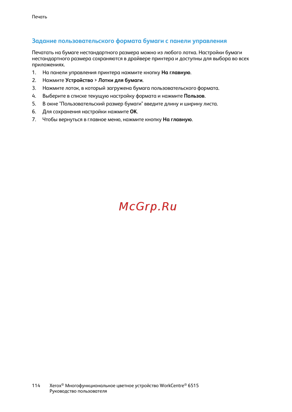 Xerox WorkCentre 6515DN [114/320] Задание пользовательского формата бумаги с панели управления