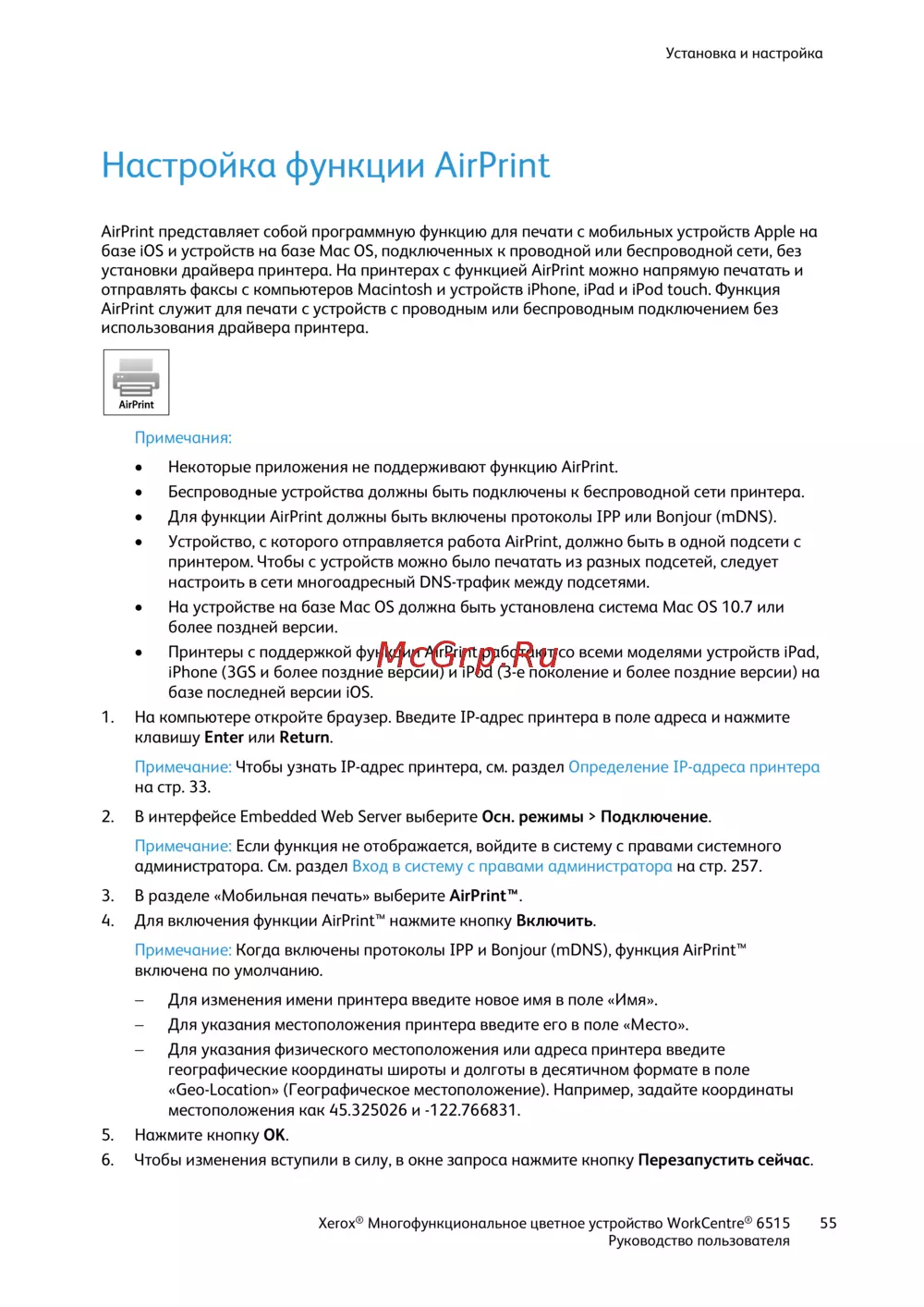 Xerox WorkCentre 6515DN [55/320] Настройка функции airprint