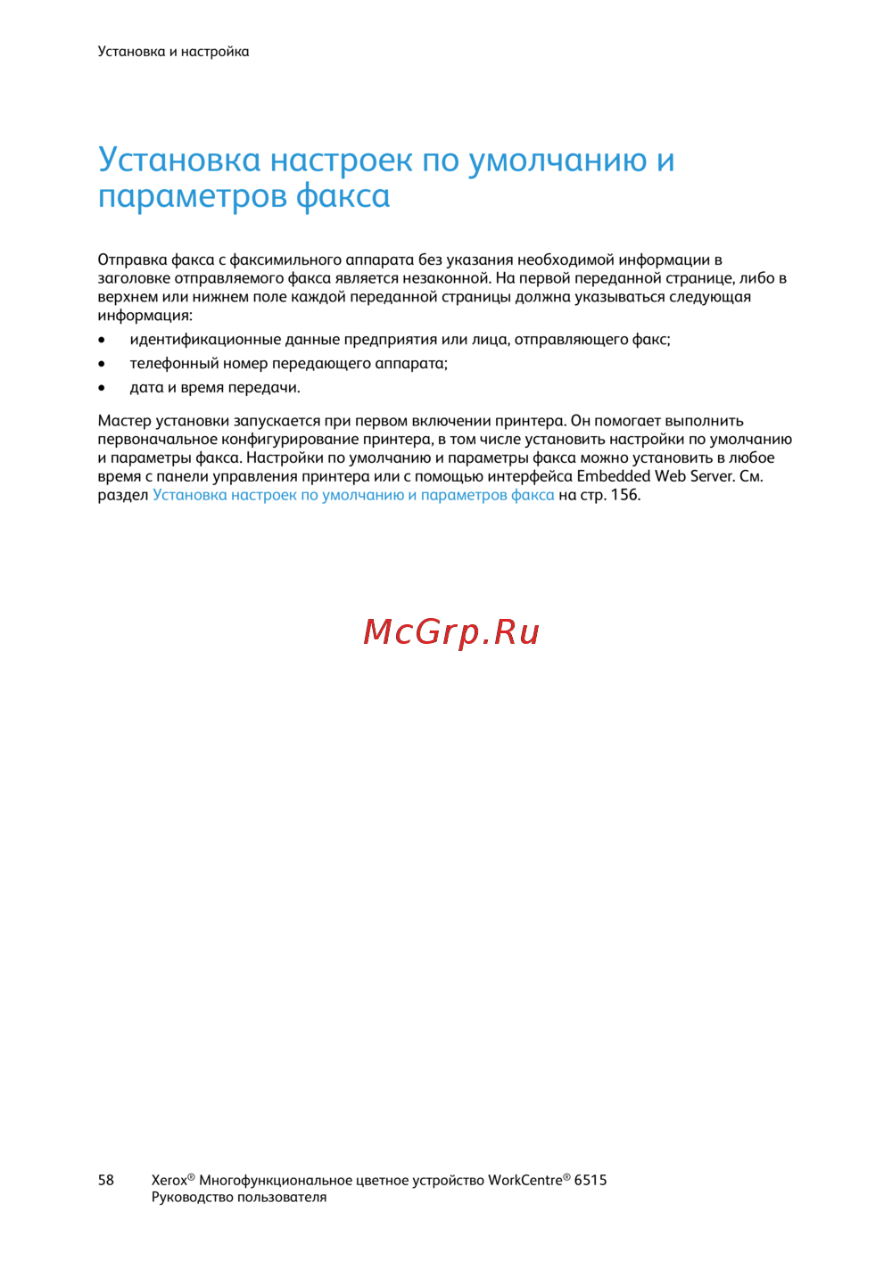 Xerox WorkCentre 6515DNI — установка и настройка факса: важные параметры и требования [58/320]
