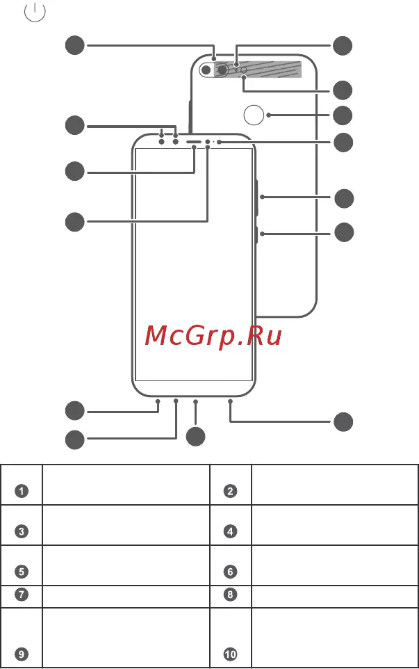 - Основная камерафронтальная камераразговорный динамикдатчик освещенностиразъем для наушниковосновной микрофонпорт microusbдинамиккнопка питаниякнопка регулировки громкостииндикатор состояниядатчик отпечатка пальцавспышкадополнительный микрофон p.2