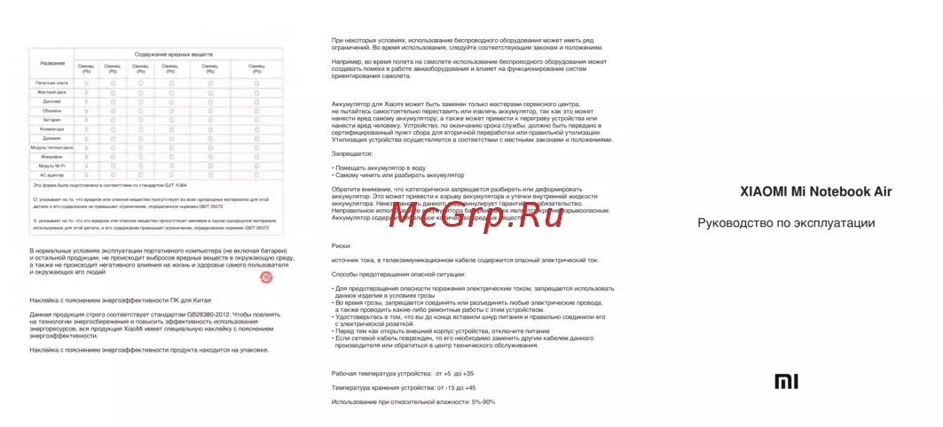 Xiaomi Mi Notebook Air 13.3″Инструкция по эксплуатации -