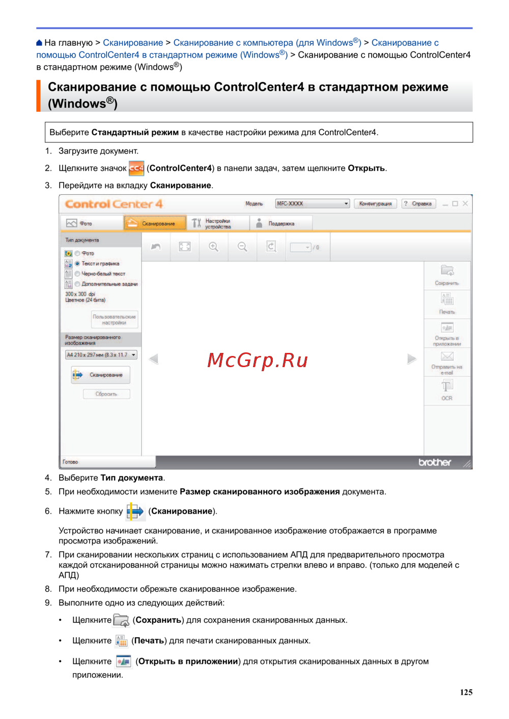 - Настройка устройства brother с помощью controlcenter4 window p.538