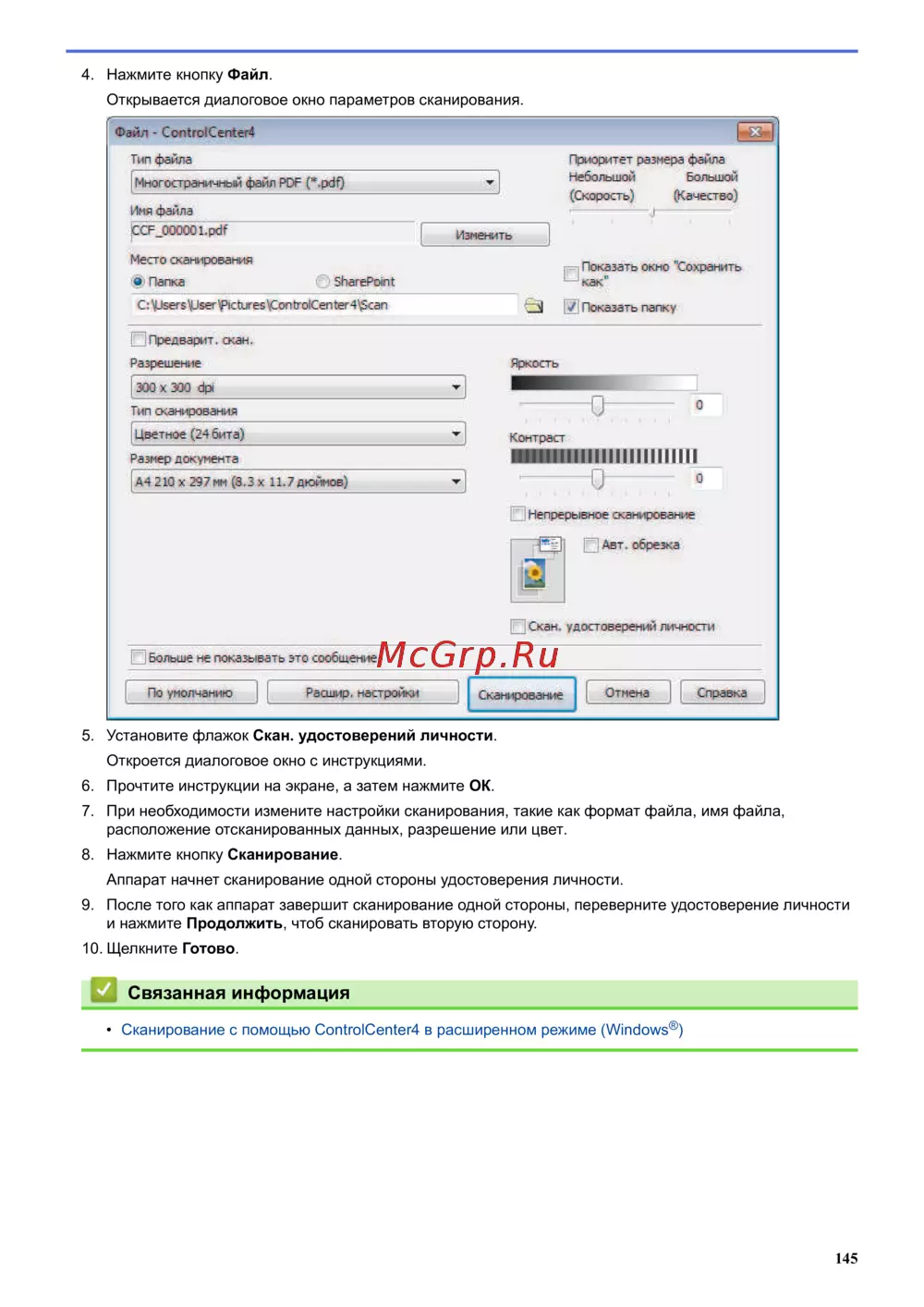 • Сканирование с помощью ControlCenter4 в расширенном режиме (Windows