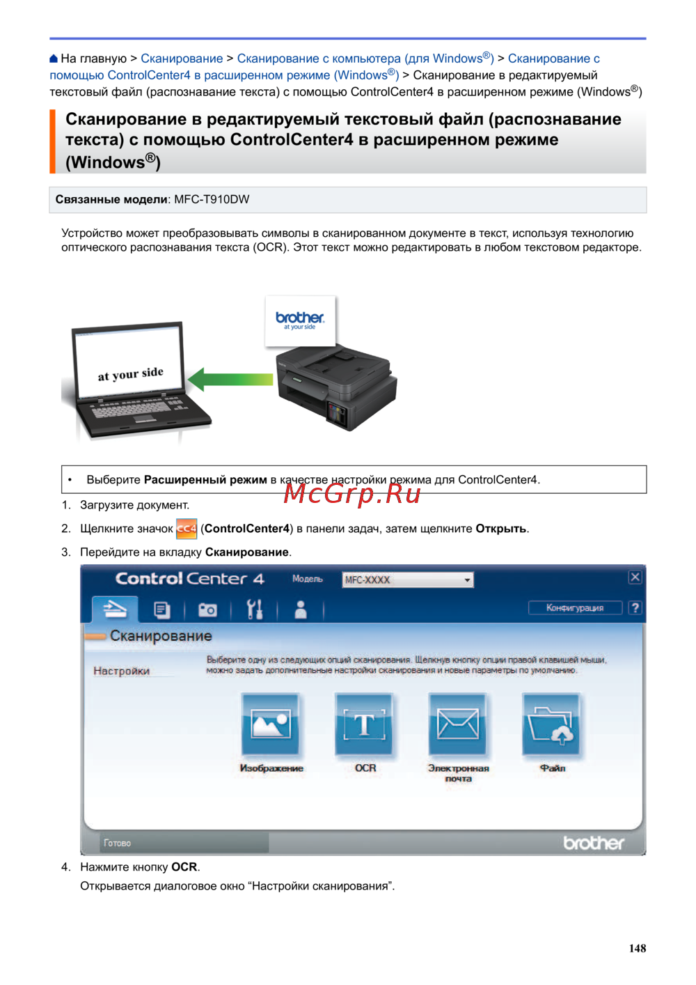- Настройка устройства brother с помощью controlcenter4 window p.542