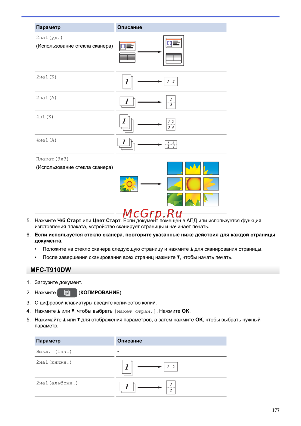 - Эта функция доступна для mfc t910dw p.555