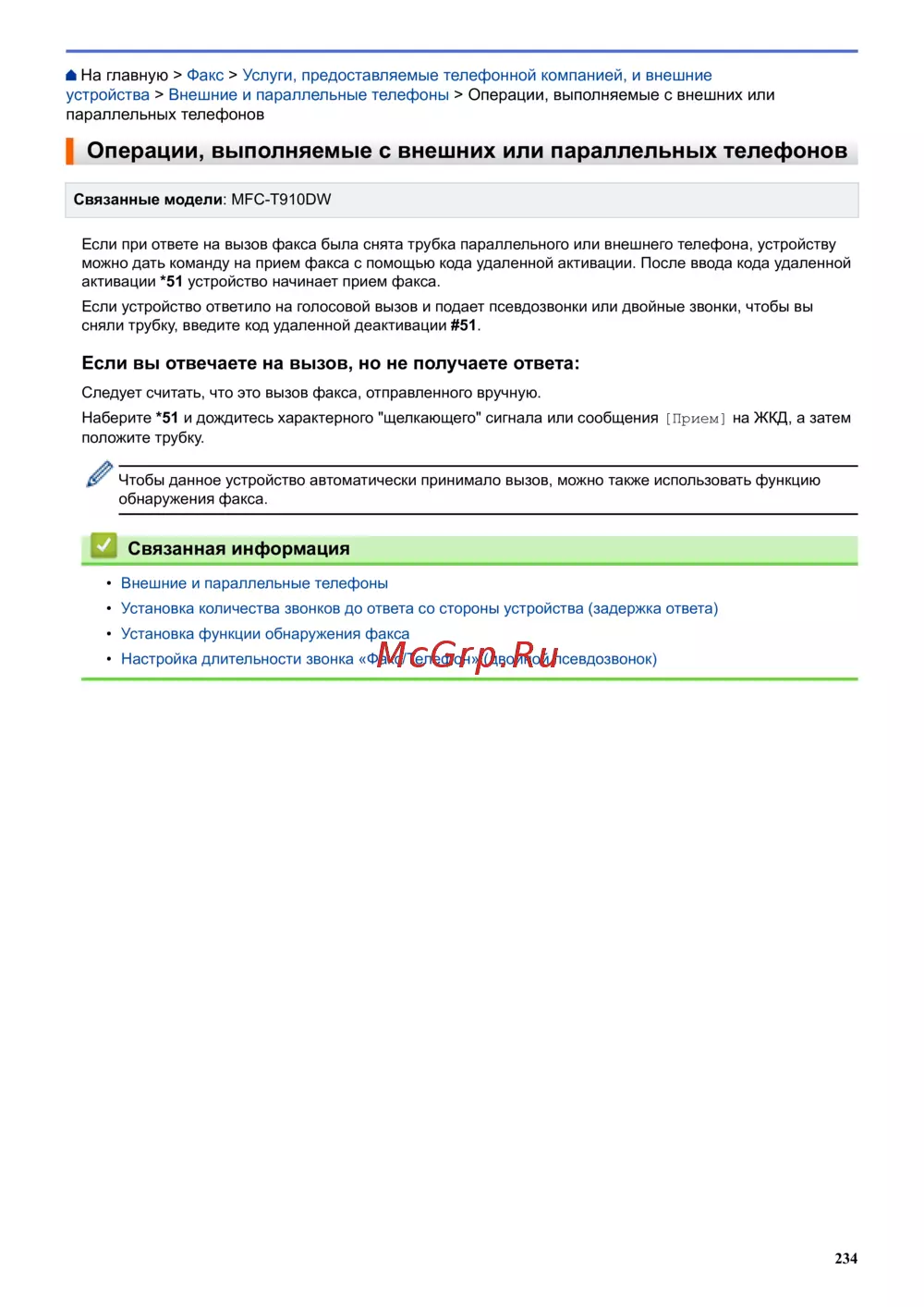 устройства > Внешние и параллельные телефоны > Операции, выполняемые с внешних или