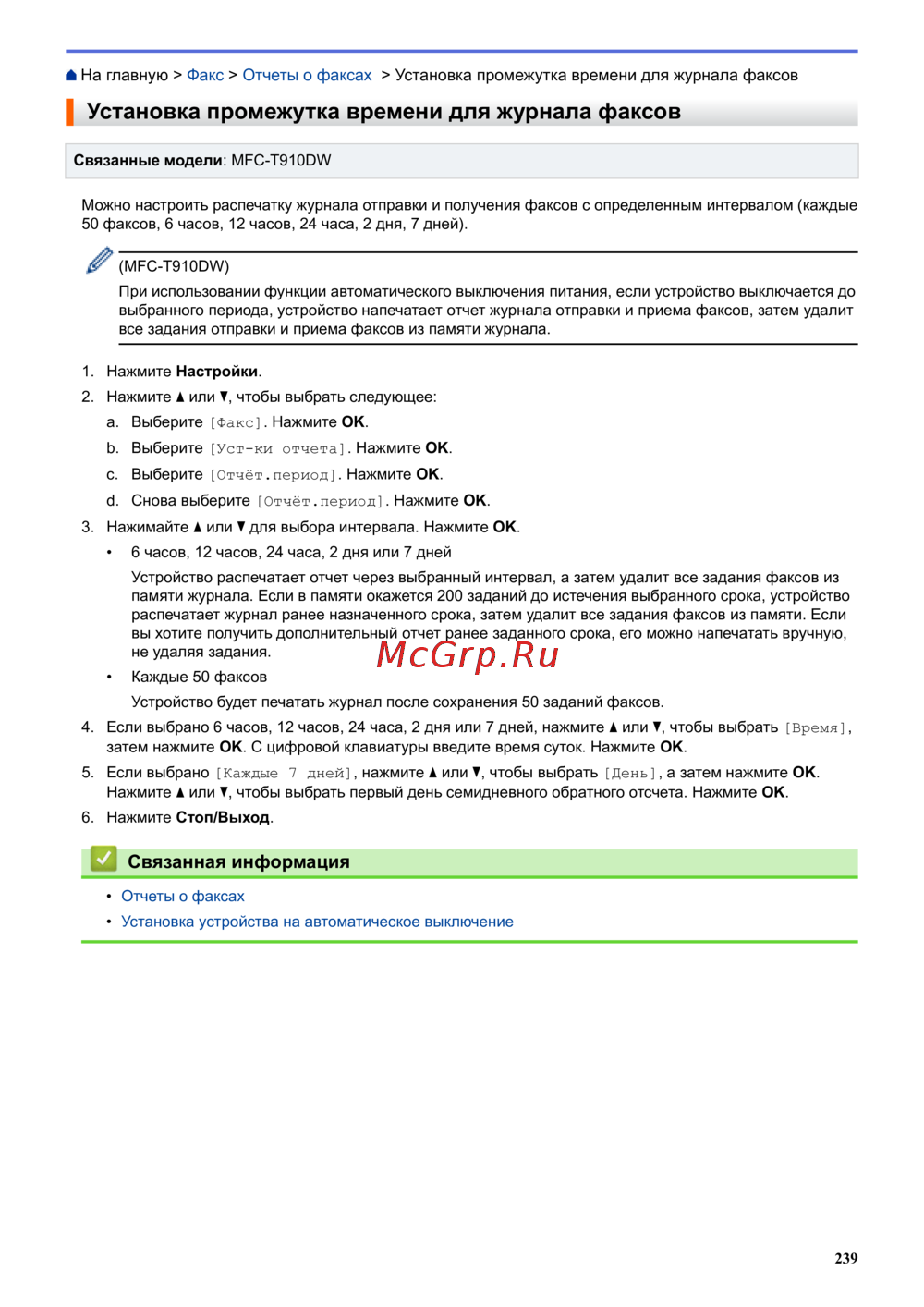 Brother DCP-T310 InkBenefit Plus [245/562] Установка промежутка времени для журнала факсов