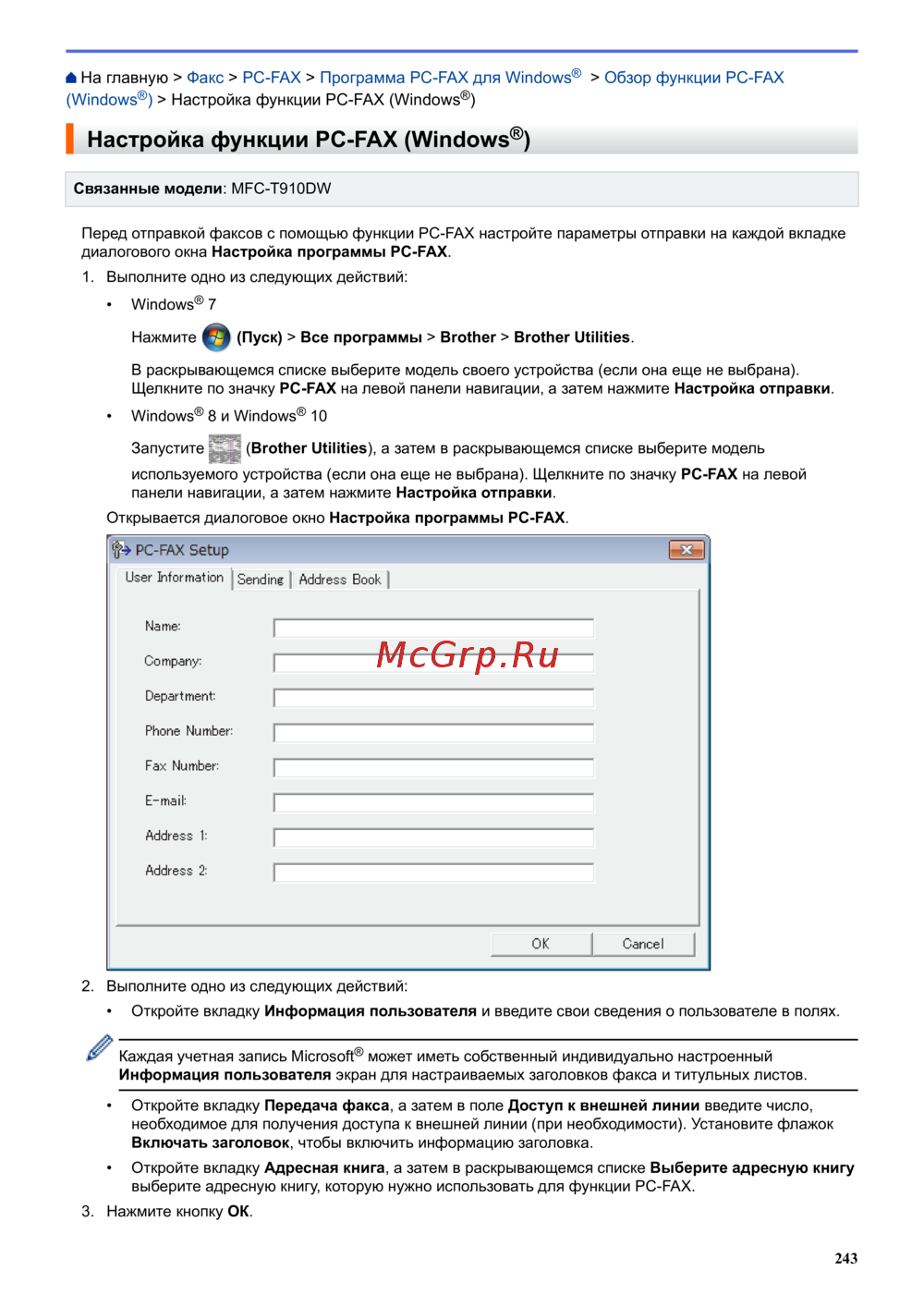 ) > Настройка функции PC-FAX (Windows