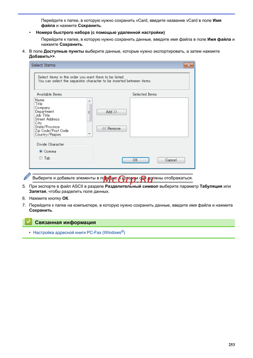- Настройка адресной книги устройства с помощью controlcenter4 window p.538