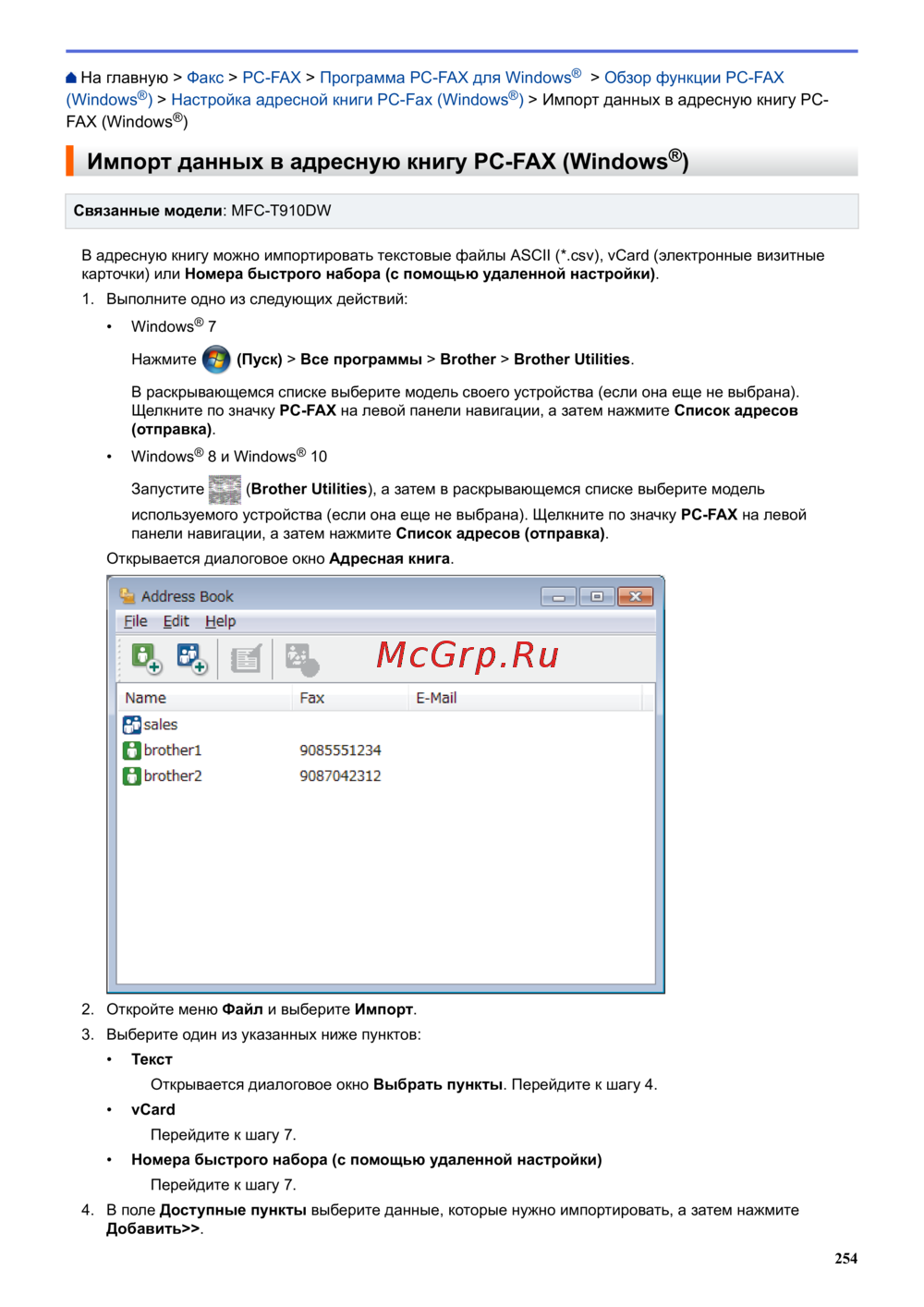 - Настройка адресной книги устройства с помощью controlcenter4 window p.544