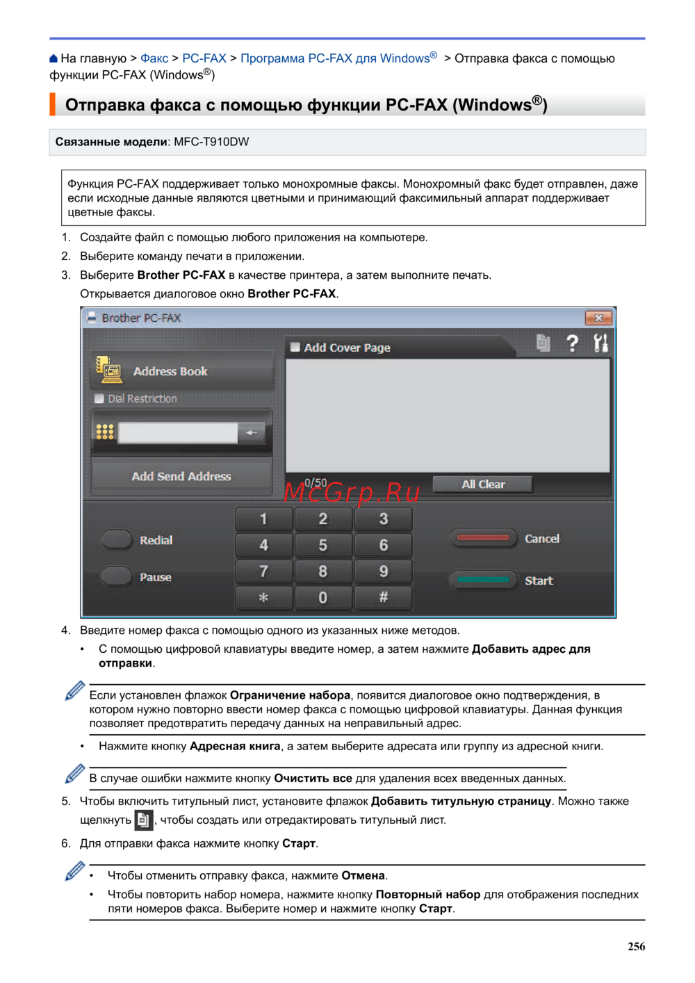 Функция PC-FAX поддерживает только монохромные факсы. Монохромный факс будет отправлен, даже