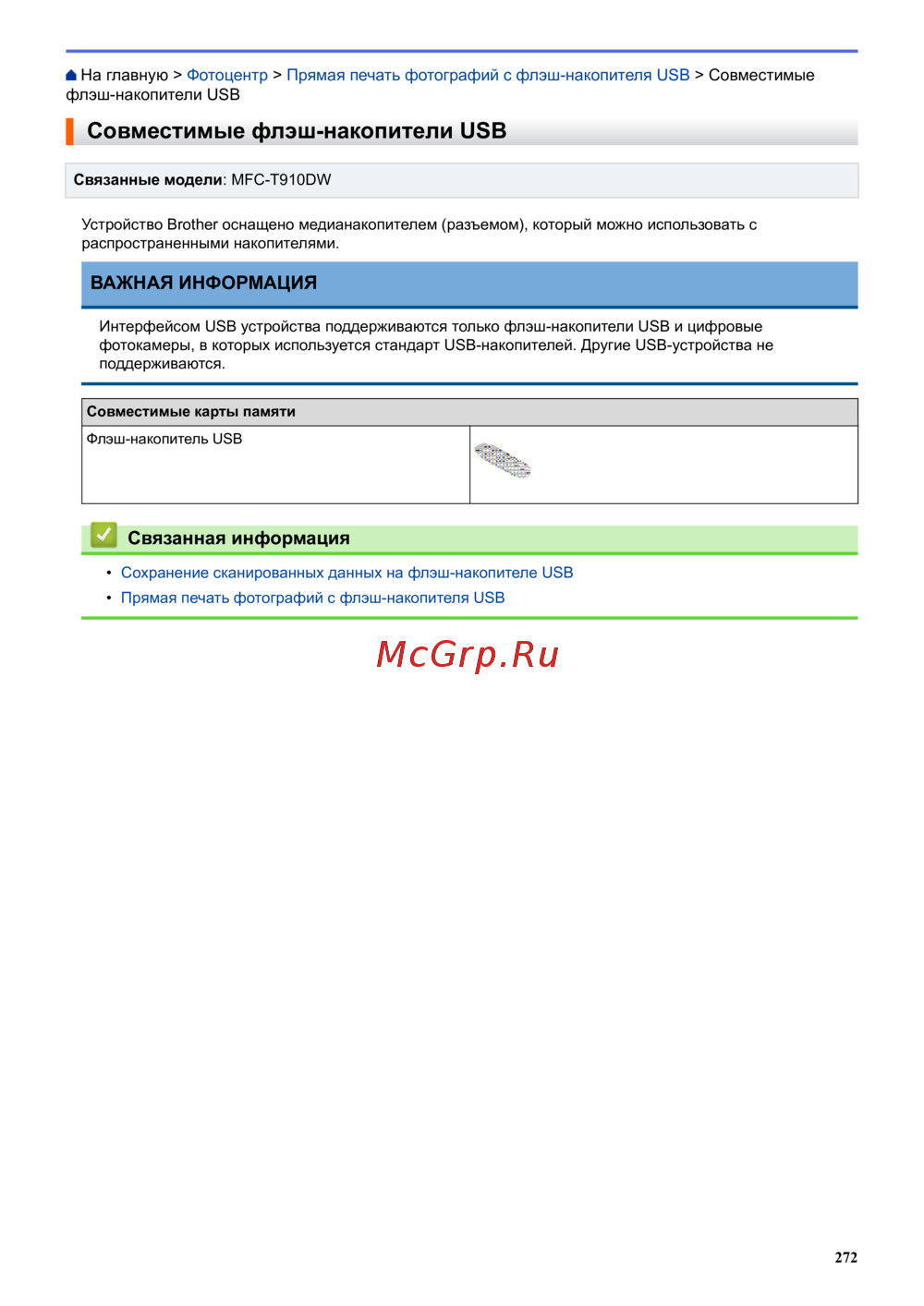 Brother DCP-T310 InkBenefit Plus [278/562] Совместимые флэш накопители usb
