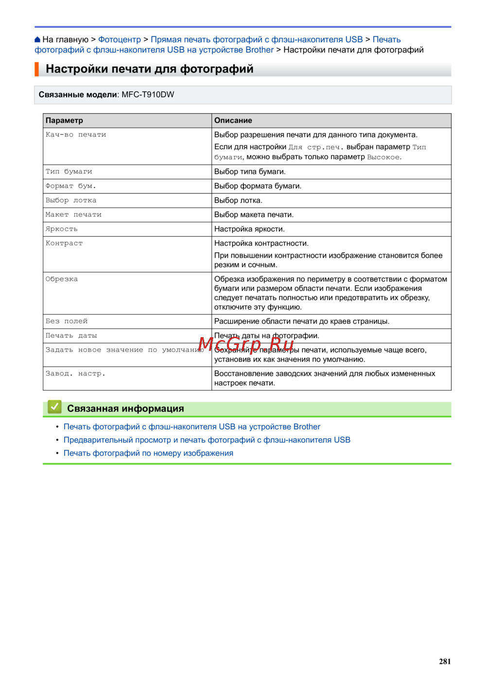 фотографий с флэш-накопителя USB на устройстве Brother > Настройки печати для фотографий