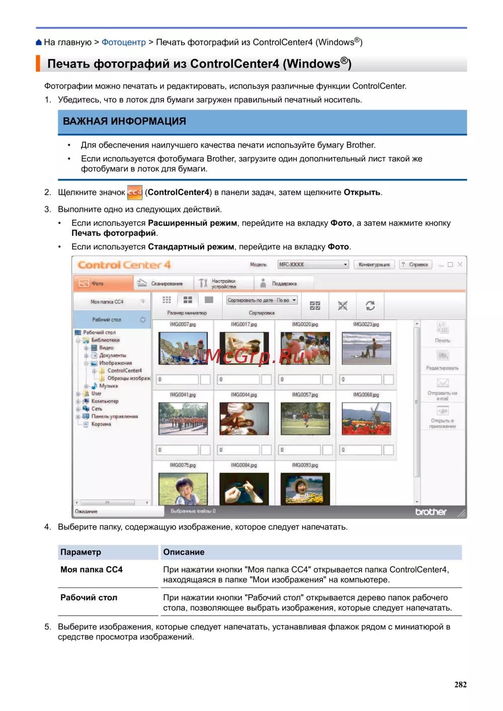 На главную > Фотоцентр > Печать фотографий из ControlCenter4 (Windows