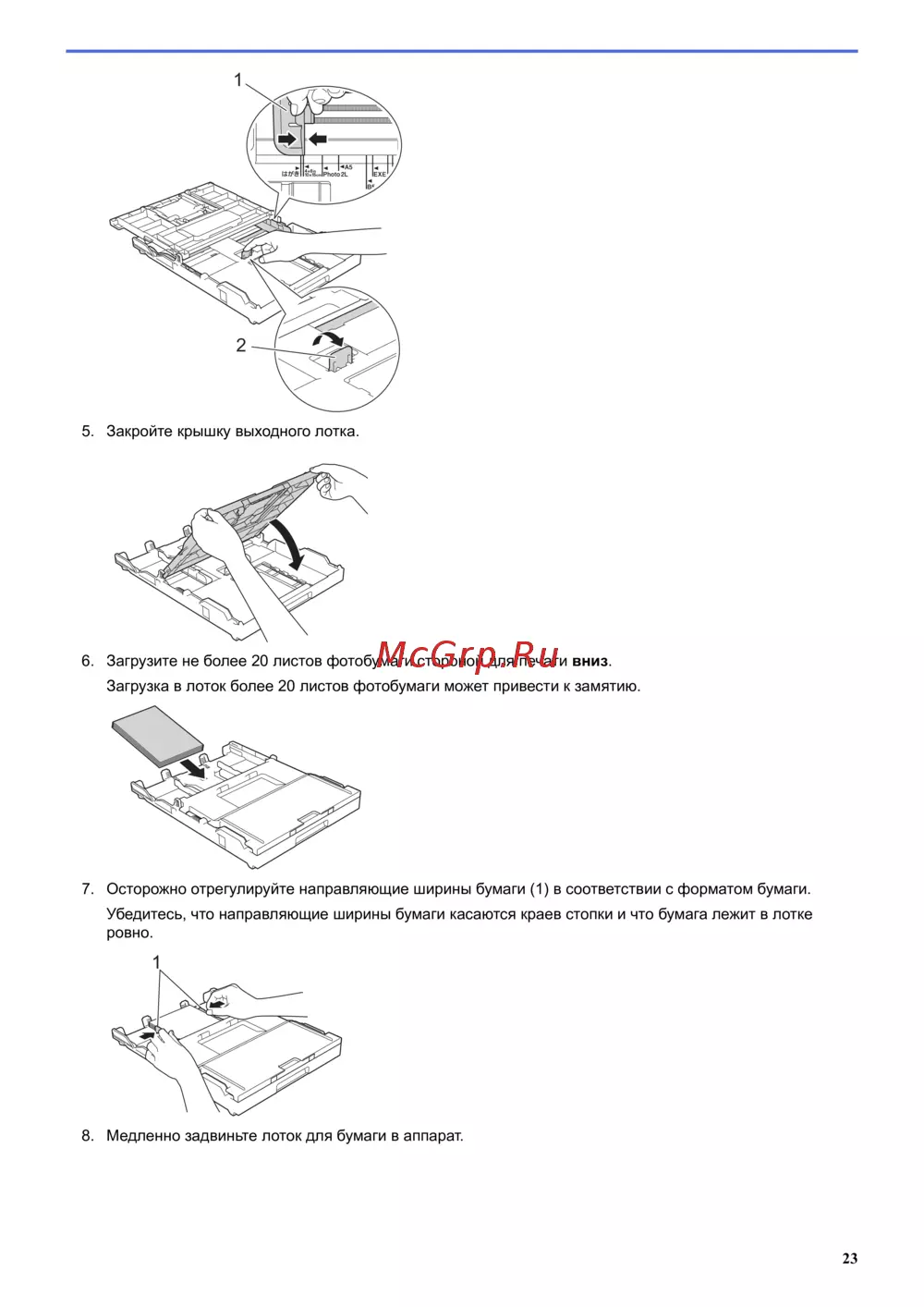 Загрузка в лоток более 20 листов фотобумаги может привести к замятию.