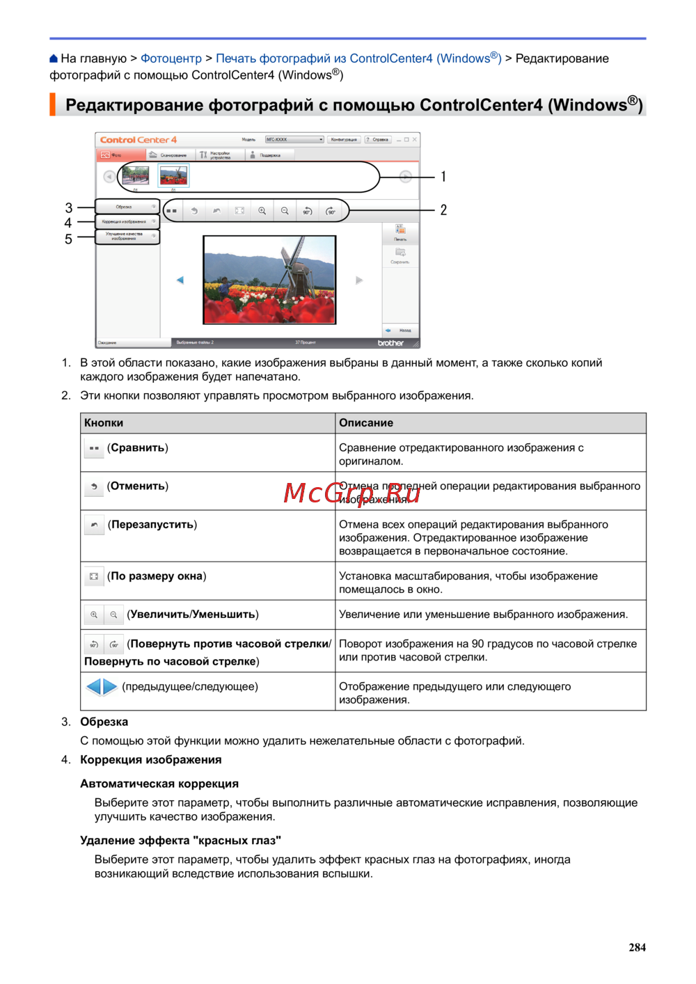 Редактирование фотографий с помощью ControlCenter4 (Windows