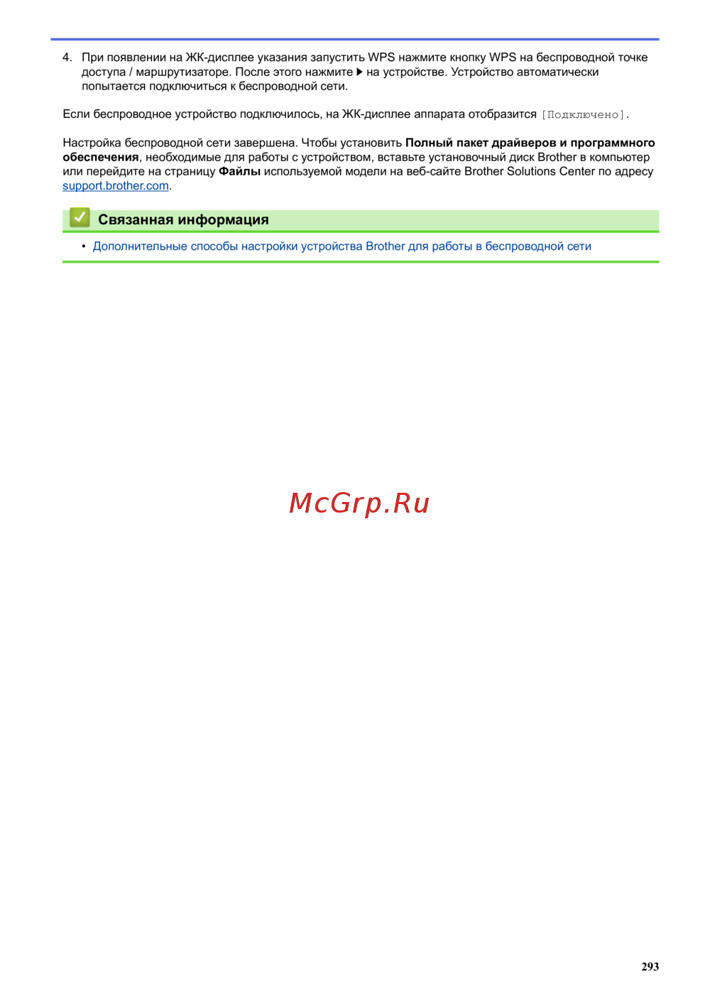 - Для загрузки последних обновлений драйверов перейдите на страницу файлы используемой модели на веб сайте brother solutions center по адресу support brother com и загрузите полный пакет драйверов и программного обеспечения p.558