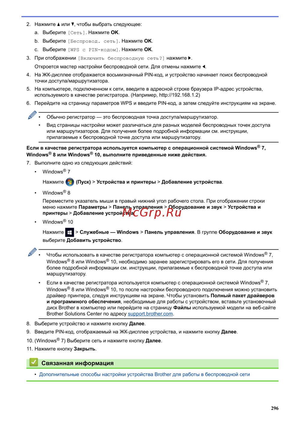 • Дополнительные способы настройки устройства Brother для работы в беспроводной сети