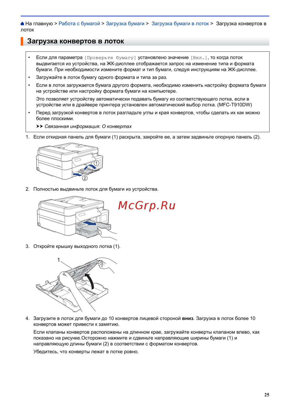 - Загрузка конвертов в лоток p.31