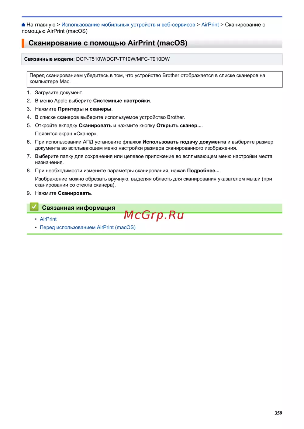 Brother DCP-T310 InkBenefit Plus [365/562] Сканирование с помощью airprint macos