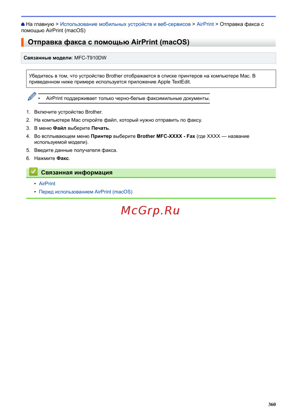 На главную > Использование мобильных устройств и веб-сервисов > AirPrint > Отправка факса с