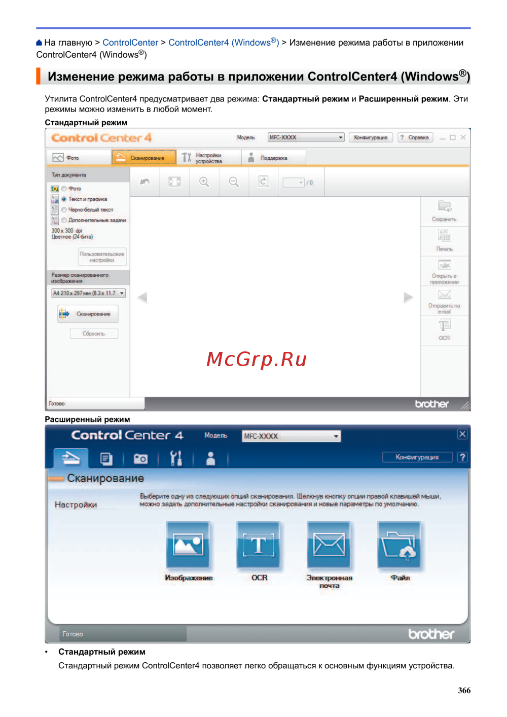 - Настройка устройства brother с помощью controlcenter4 window p.542