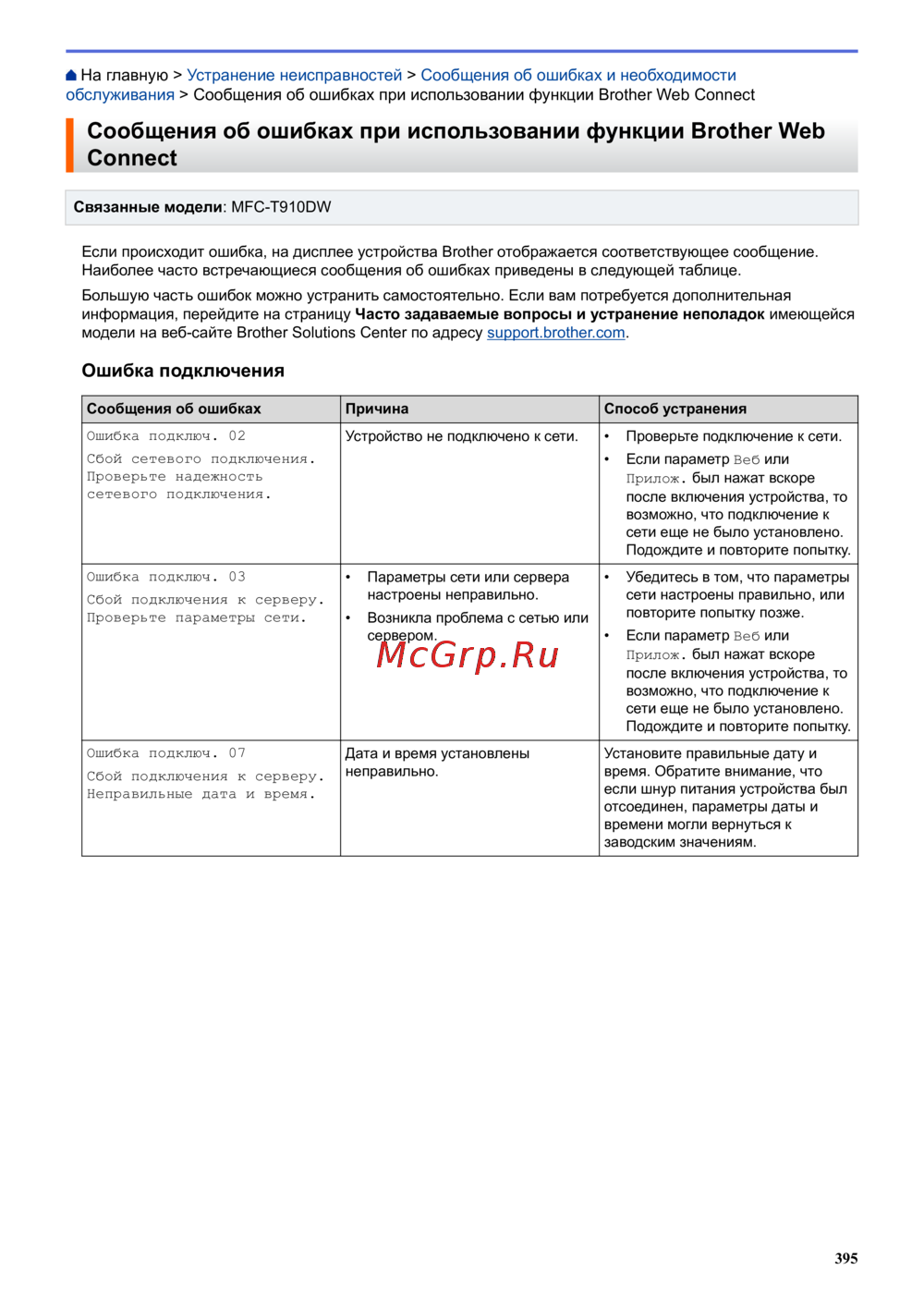 Brother DCP-T310 InkBenefit Plus — устранение ошибок подключения в функциях веб-соединения [401/562]
