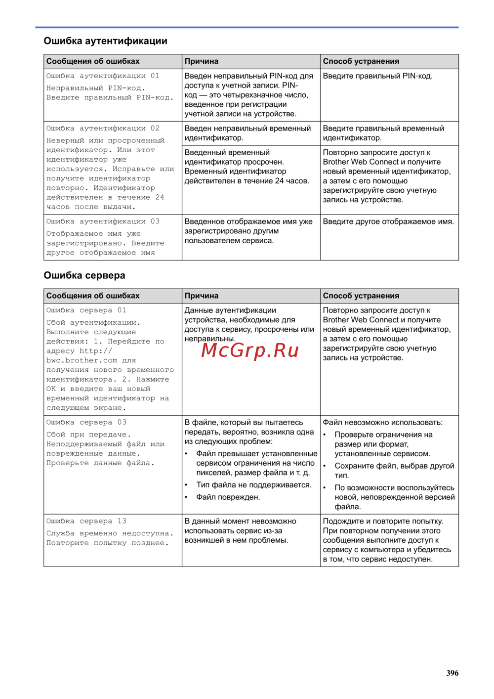 Brother DCP-T310 InkBenefit Plus [402/562] Ошибка сервера