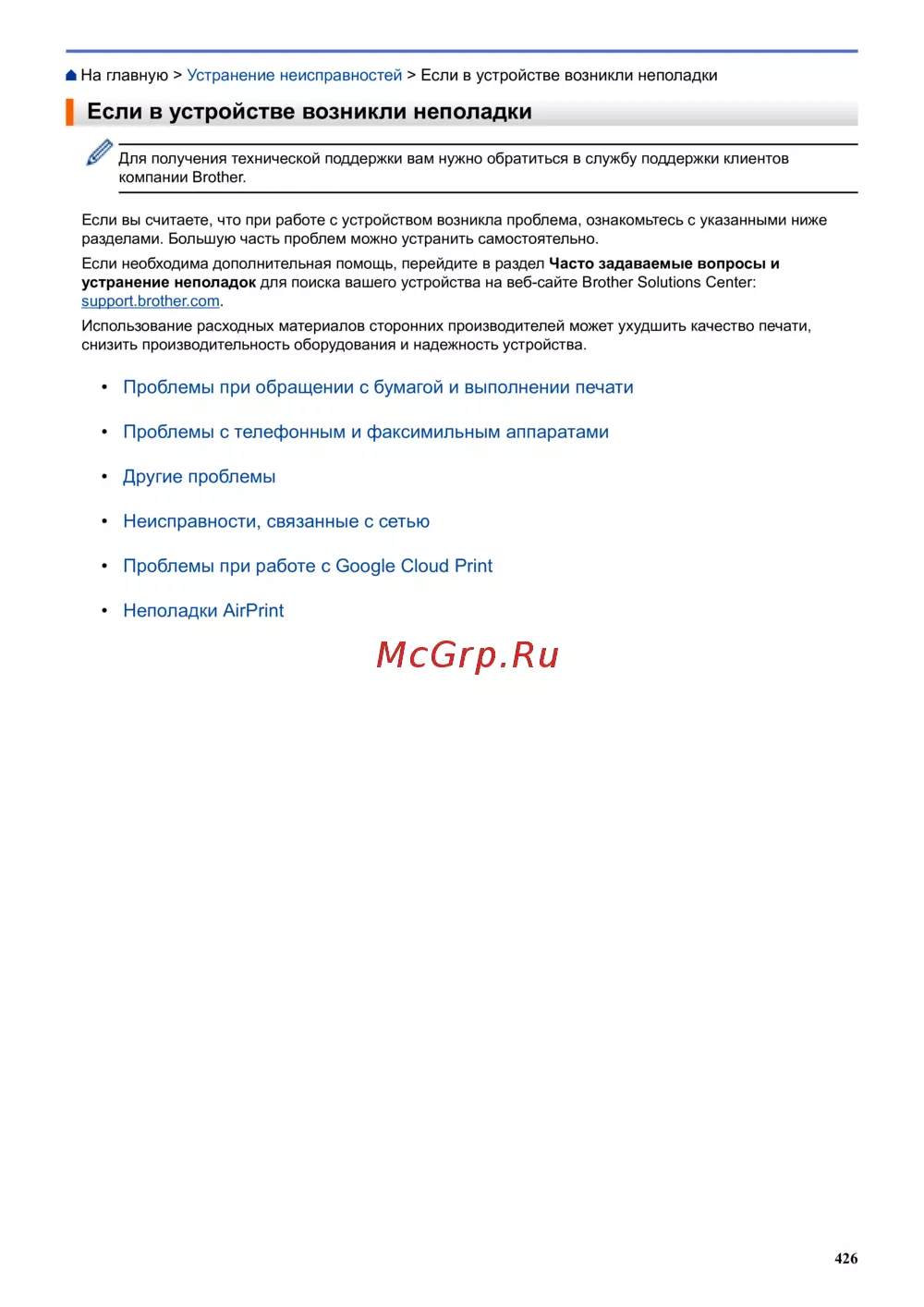 - Для загрузки последних обновлений драйверов перейдите на страницу файлы используемой модели на веб сайте brother solutions center по адресу support brother com и загрузите полный пакет драйверов и программного обеспечения p.558