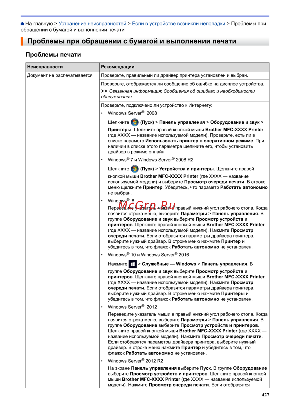 - Для загрузки последних обновлений драйверов перейдите на страницу файлы используемой модели на веб сайте brother solutions center по адресу support brother com и загрузите полный пакет драйверов и программного обеспечения p.558